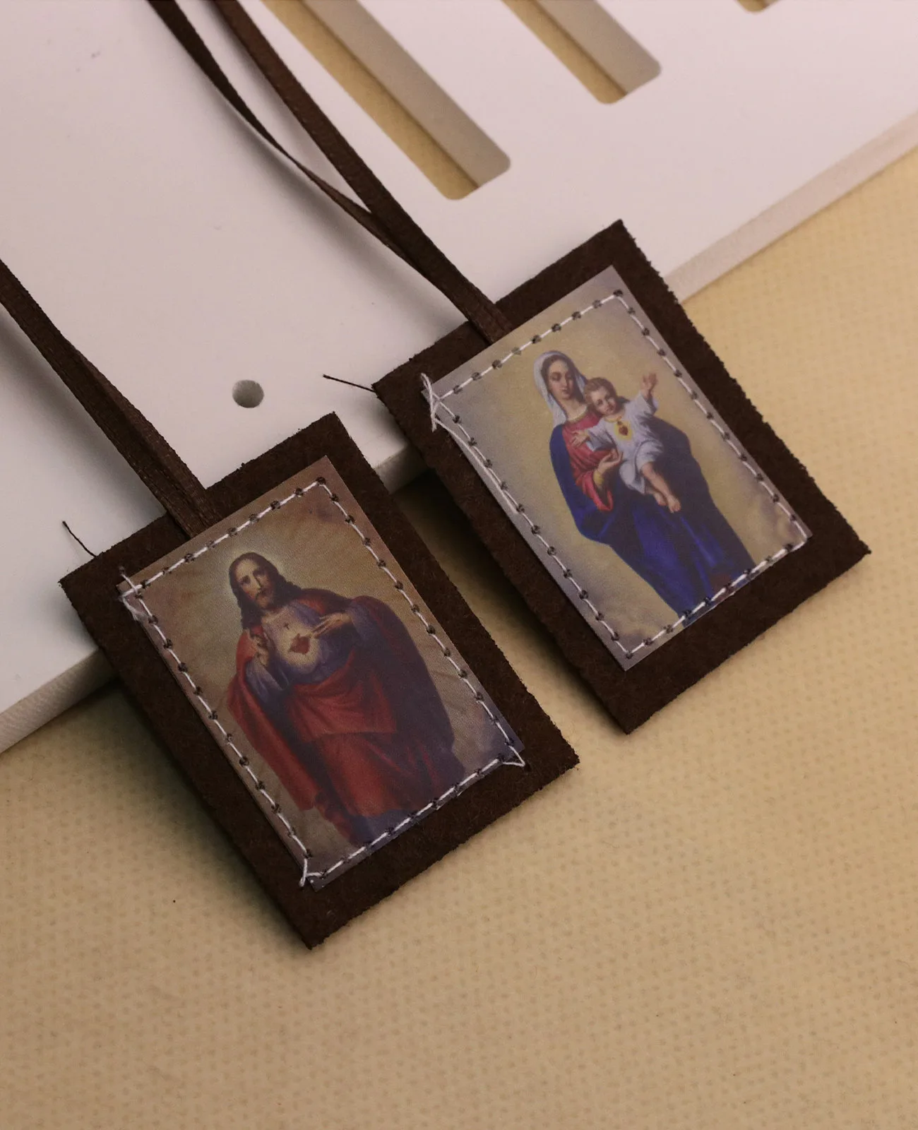 Catholic Rectangular Icon Sacred Heart of Jesus with Our Lady Mt.Carmel Escapula