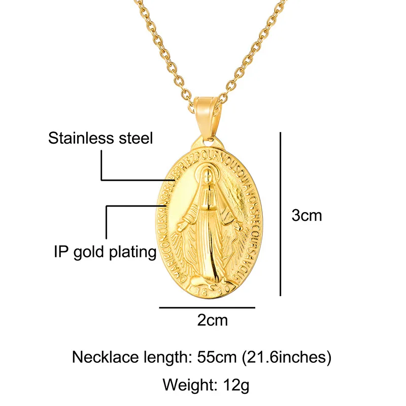 Miraculous Medal Stainless Steel Oval Pendant Necklace for Women Men Wild Jewelry GiftNote1:We will keep your privacy safe and will not reveal any private information.2:Please contact us if you have any questions. Our after-sales team will give you a perfect solution in the first time.Item Specification:Features: