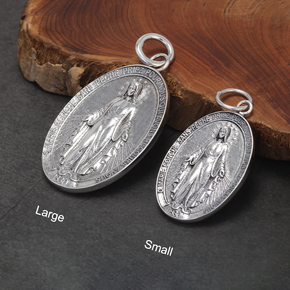S925 Sterling Silver Catholic Virgin Mary Medal Pendant Necklace for Men Women O